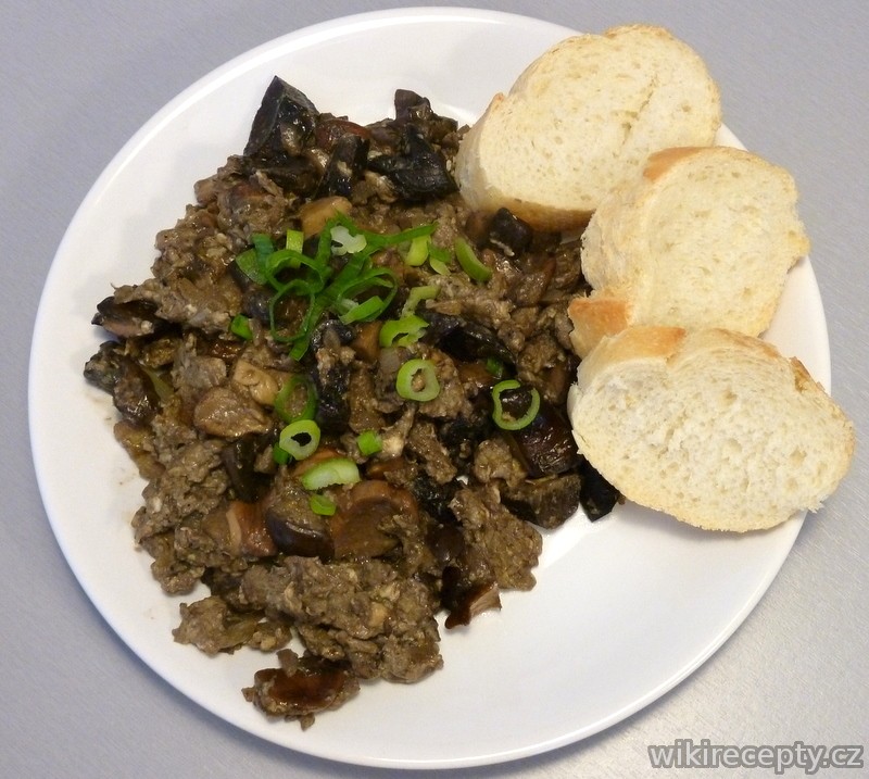 Očištěné houby pokrájíme na čtvrtiny nebo na plátky. V pánvi rozehřejeme máslo a zpěníme na něm cibulku. Jakmile změkne, přidáme houby, špetku kmínu a za občasného míchání je dusíme pod pokličkou doměkka. Pokud se houby přichytávají ke dnu, podlijeme je trochou vody (raději méně než více). Vejce prošleháme se solí a pepřem a vlijeme k houbám, ještě krátce mícháme, stáhneme z tepla a podáváme s jarní cibulkou a čerstvým pečivem.