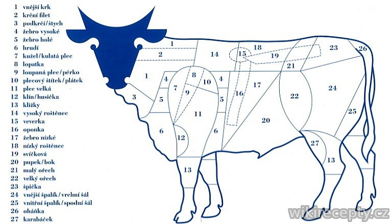 - Krk (Chuck) – vhodný na pečení (na víně, s česnekem), pomalé dušení, ale i připravu omáček.