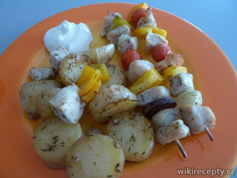 Naložené maso vyndáme z chladničky a zprudka orestujeme na rozpálené pánvi. Jakmile se masíčko zatáhne a není růžové, stáhneme plamen a 5 minut restujeme. Poté vezmeme špejle (ideální jsou přímo na špízy s ostrou špičkou) a napichujeme jednotlivé ingredience podle chuti a fantazie. Připravené špízky vložíme do olejem omaštěného pekáče a dáme cca na 20 minut péct. Podáváme buď se šťouchanými bramborami nebo zapečeme společně s bramborami ve šlupce.