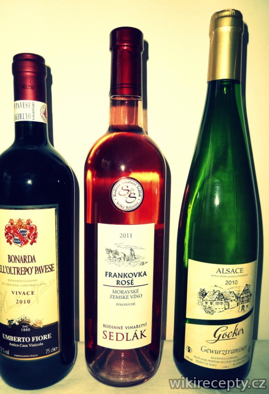 * maso s červenou omáčkou (např. rajská) – rulandské modré nebo modrý portugal